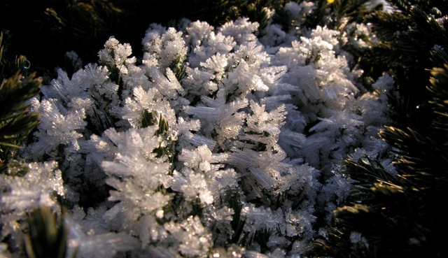 7. Ijzingwekkende foto’s Sandra. Dit ijs ziet er al behoorlijk dik uit en kan volgens mij op geschaatst worden. Of is dit jullie vijver die flink aangevroren is ? Ook de rijp geeft mooie effecten als je het wat closer bekijkt.