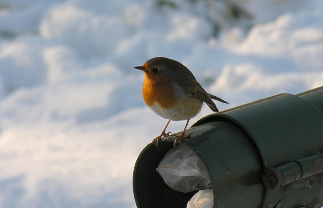 Een roodborstje hoopte dat ik de eenden ging voeren, jammer maar ik had geen brood bij me