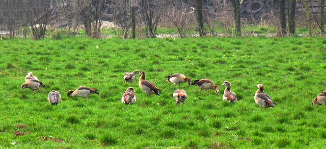En dit was vandaag het uitzicht vanuit de achtertuin, een …tja wat zal ik zeggen…een honderdtal Nijlganzen
