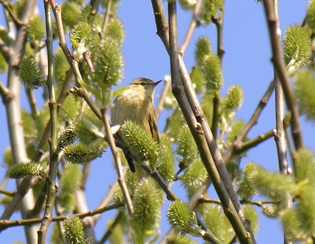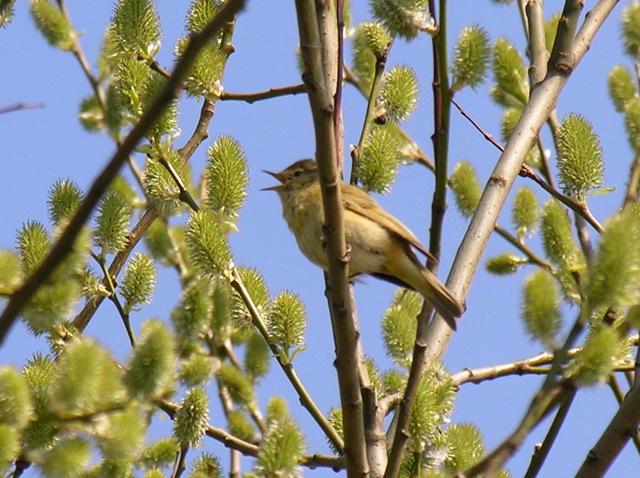 Heb het gevraagd op vogelvisie, maar de antwoorden zijn verdeeld. Het zou een tjiftjaf zijn omdat de Fitis een zomergast is en nog niet in den lande zou zijn….ik weet het niet, de geluiden komen met beide niet overeen.
