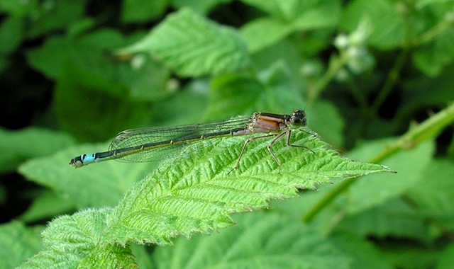 Een juffer met een roze lijfje en een blauw puntje aan het uiteinde. Er zijn vele soorten maar juist deze zie ik er weer niet tussen staan.