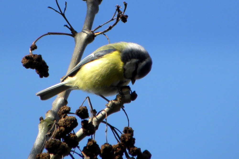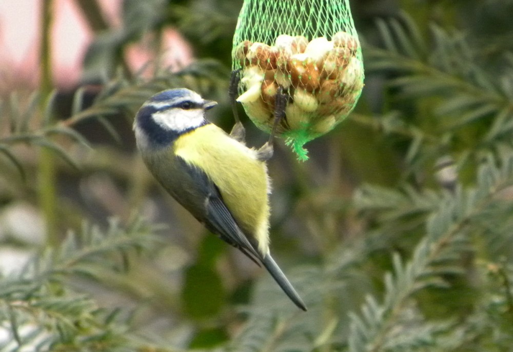 Sja, het is maar een pimpelmees maar ik geniet nog steeds van de zoomkracht van mijn Nikon waarmee de resultaten toch heel wat beter zijn,