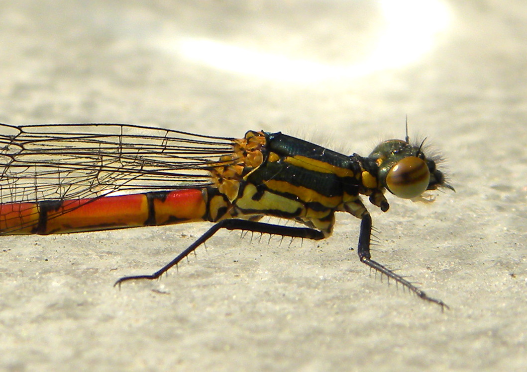 Ah, toch een beestje. Een Vuurjuffer, vers van de pers….nog niet op kleur. Eigenlijk is ze zo mooier dan wanneer ze wel op kleur is.