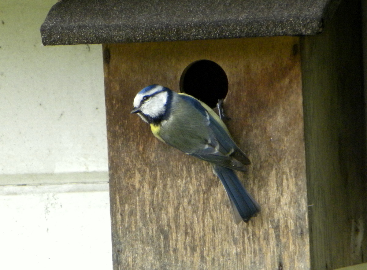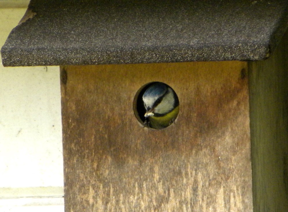 De Pimpelmeesjes hebben al jongen want bij het naar buiten vliegen had deze al een poepje om op te ruimen.