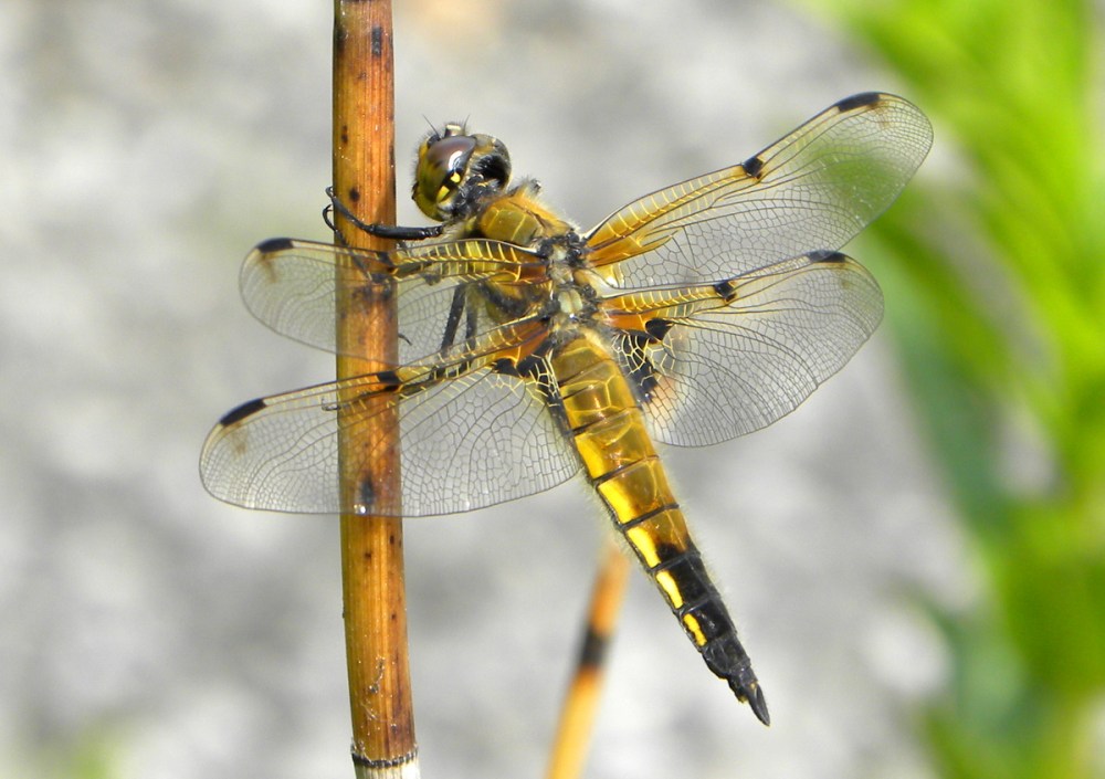 De hele week geen grote libelles gezien tot vandaag. Vandaag heb ik helemaal geen tijd voor foto’s te maken maar even snel dan toch maar 5 minuutjes uittrekken om de eerste Viervlek vast te leggen.