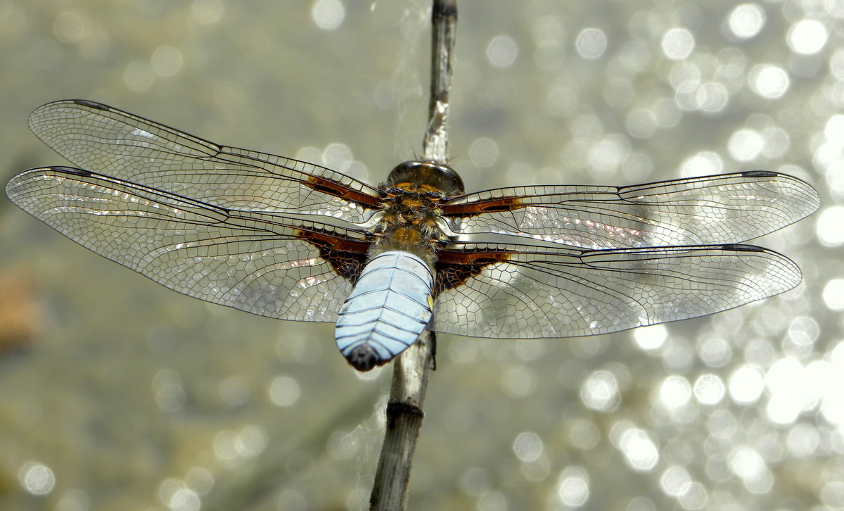 4. Mooie foto van deze Platbuik. Zeker met die reflecterende druppels op de achtergrond.