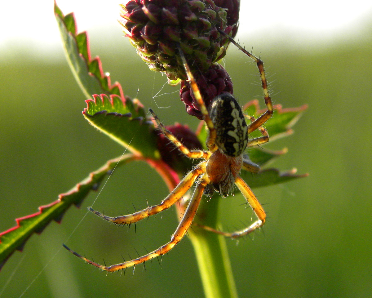 Ik had nog een spin op de foto. Qua tekening lijkt hij best wel op die Eikenbladspin uit mijn vorige blog maar toch weer anders. Een heel andere kleur en ook veel kleiner is dit exemplaar. Nu een week later ben ik erachter gekomen dat ook dit een Eikenbladspin is en wel het mannetje.