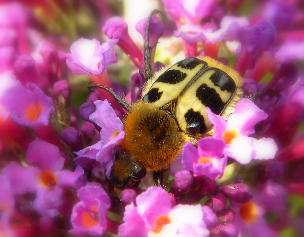 Een Penseelkever die zich aan het bezuipen is in de Vlinderstruik.
