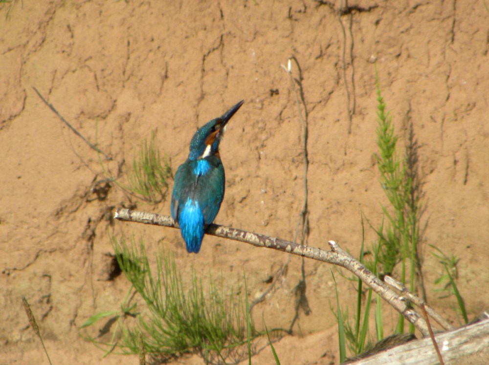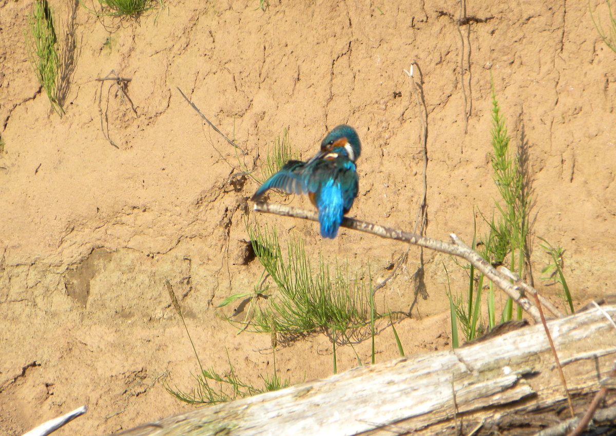 Mijn favoriete plekje was overwoekerd door hoge distels en dus moest ik op zoek naar een nieuw plekje en dat vond ik een klein stukje verderop. De IJsvogel had ik al vaker over de rivier zien scheren en nu vond ik plots zijn en haar broedplaats.
