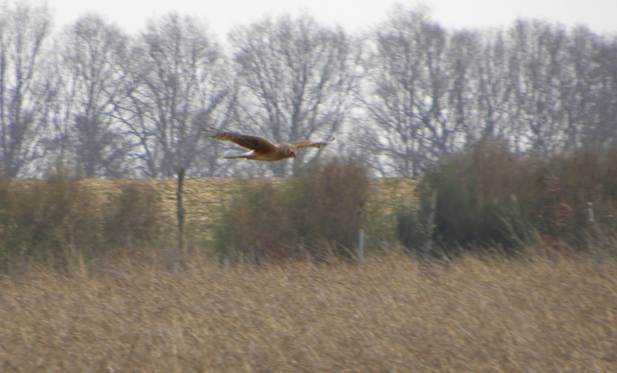 Na een heleboel buizerds en valken en blauwe kiekendieven te hebben gezien, begon ik aan de weg terug. In de verte zie ik een grote zilverreiger net landen tussen de kraaien.