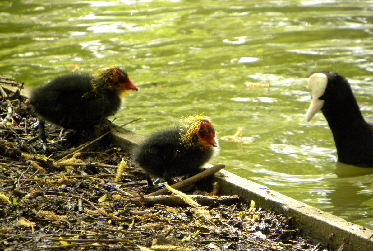 De ganzenkuikens zien er echt schattig uit…die van de meerkoet hebben altijd van die verwilderde pruikjes 😉
