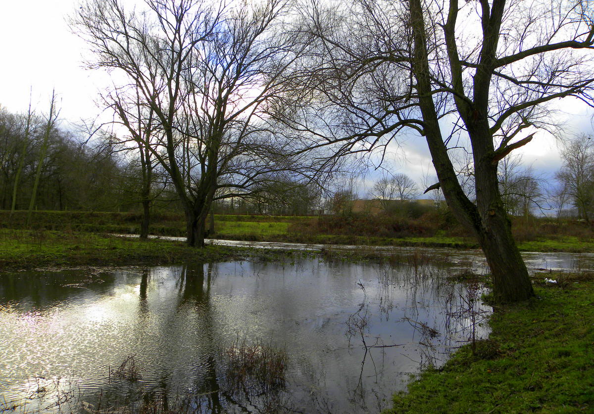 Dit zijtakje van de beek in Susteren was twee weken geleden nog  bevroren en toen maar een meter breed … beetje overstroomd dus.