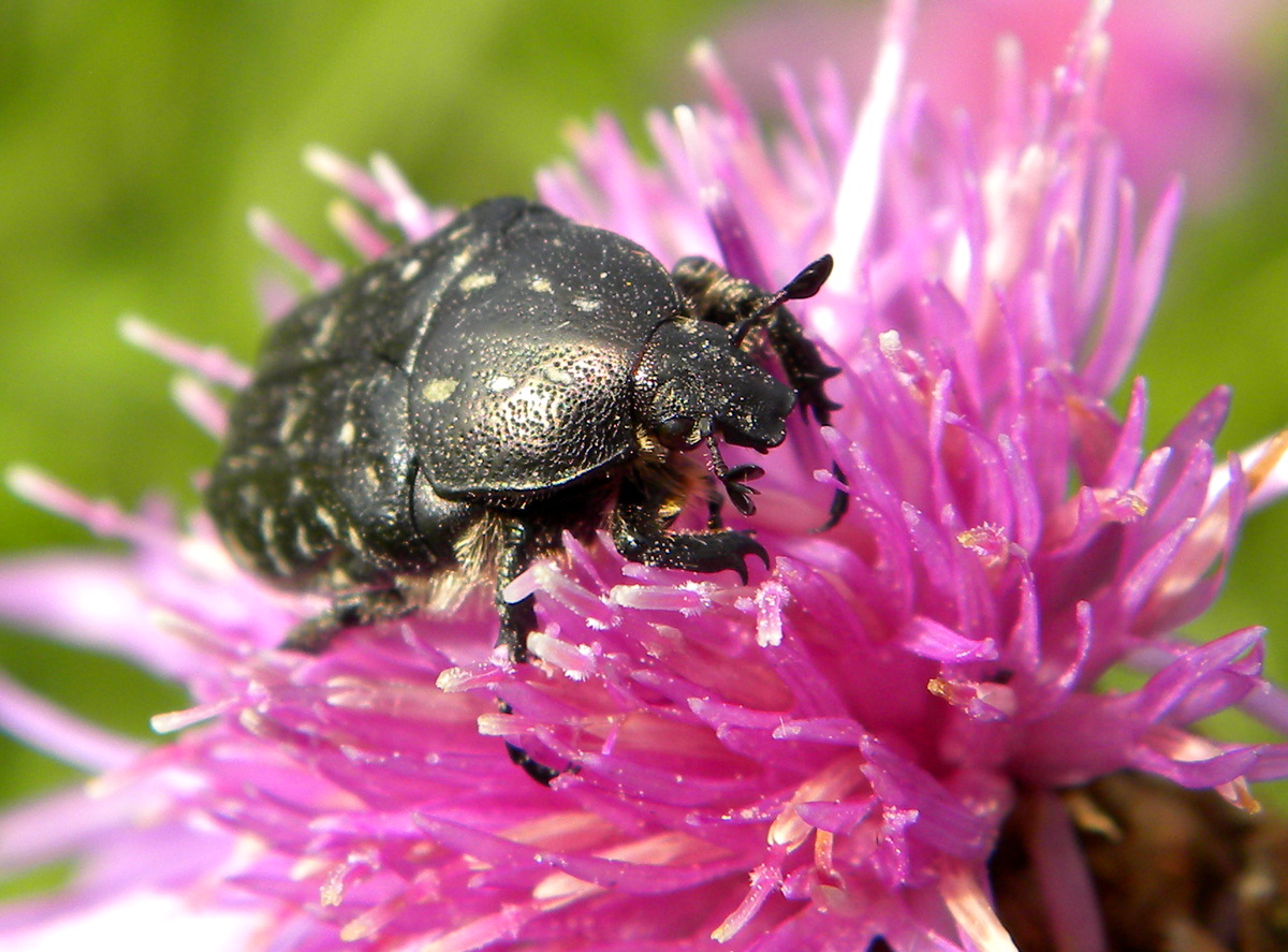 Die bladsprietkever , Oxythyrea funesta , heb ik ook hier in Limburg al enkele keren mogen fotograferen . Dit kevertje is ook een fan van distels waar die vaker op te vinden is . Inderdaad een zeldzaam diertje . Macro’s zijn mooi 🙂