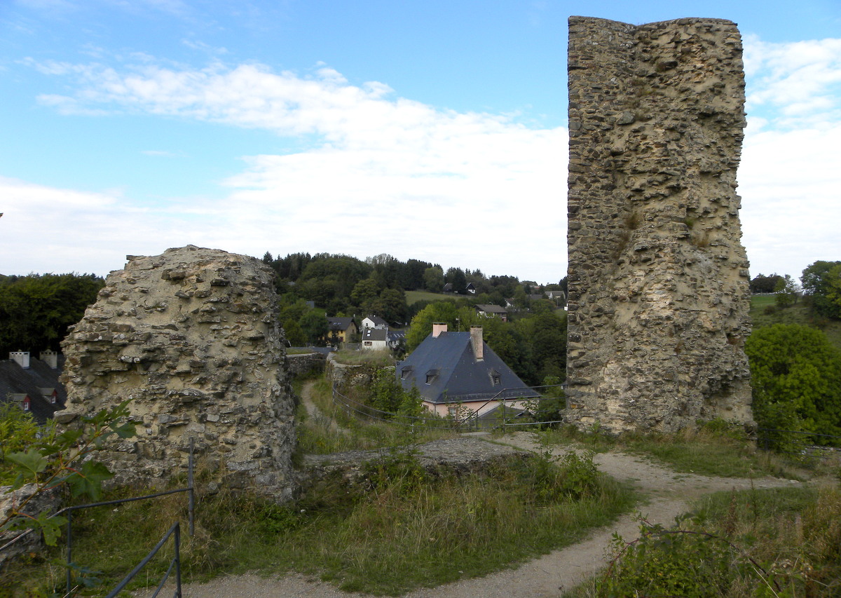 We klimmen nog omhoog om de berg ruïne te bekijken, maar dat bleek niet de moeite. 3 Stenen pilaren was alles wat er over was van de ruïne. Het aardigst was nog wel het uitzicht dat je er had.