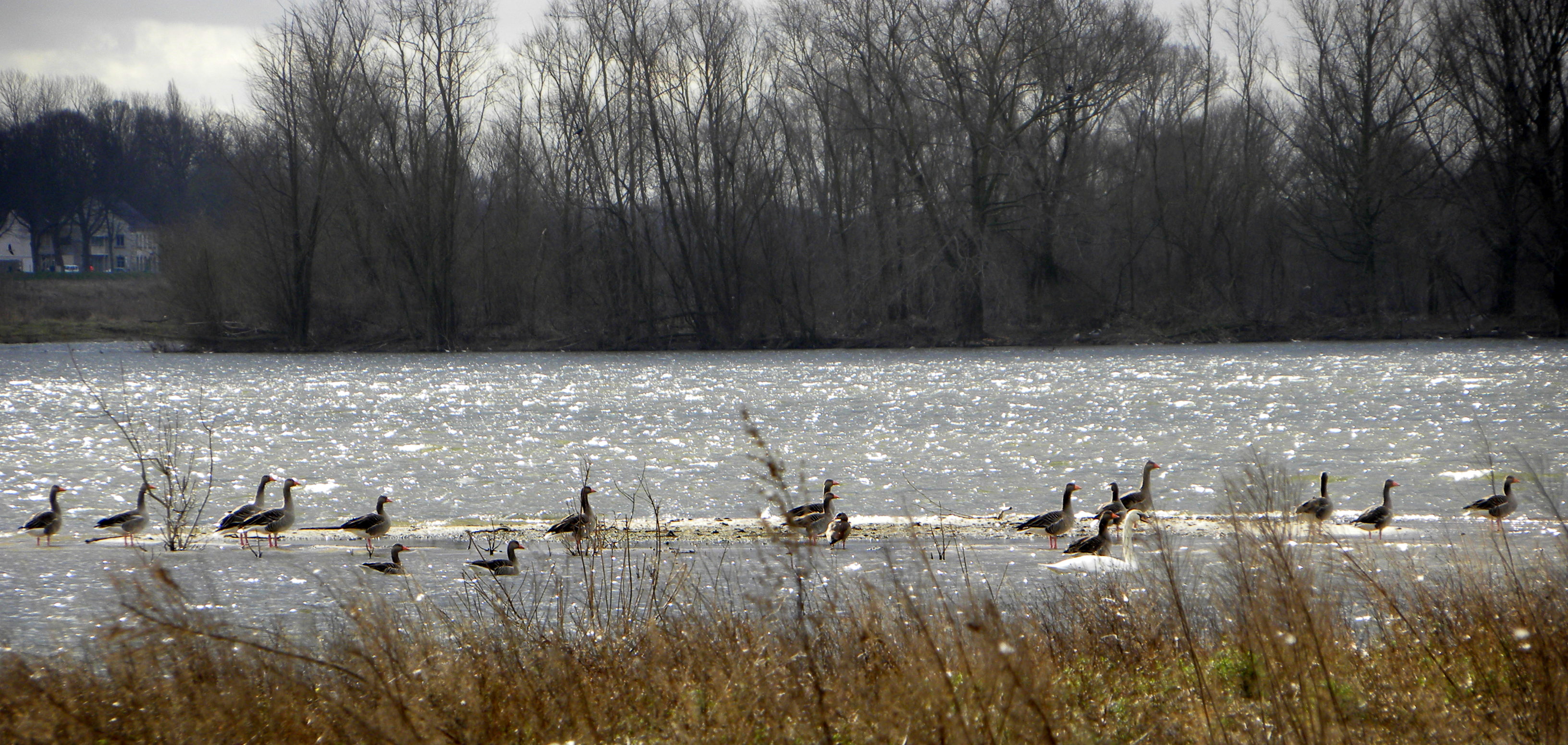 Wat een water daar en wat een ganzen. Die grauwe ganzen zie je bijna overal in – helaas – grote hoeveelheden. Jammer dat je de brilduikers er niet scherp op hebt gekregen. Zijn idd schuwe beestjes.