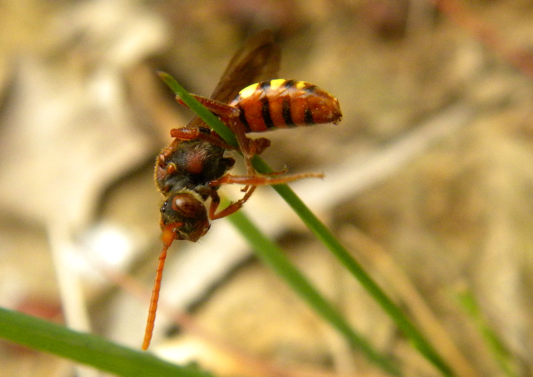 Er zijn ongelooflijk veel soorten bijen, sommigen daarvan lijken meer op een wesp. Dat zijn wespbijen en daar zijn er ook weer een heleboel verschillende van. Deze had een beetje moeite om in balans te blijven op zo’n klein grassprietje.