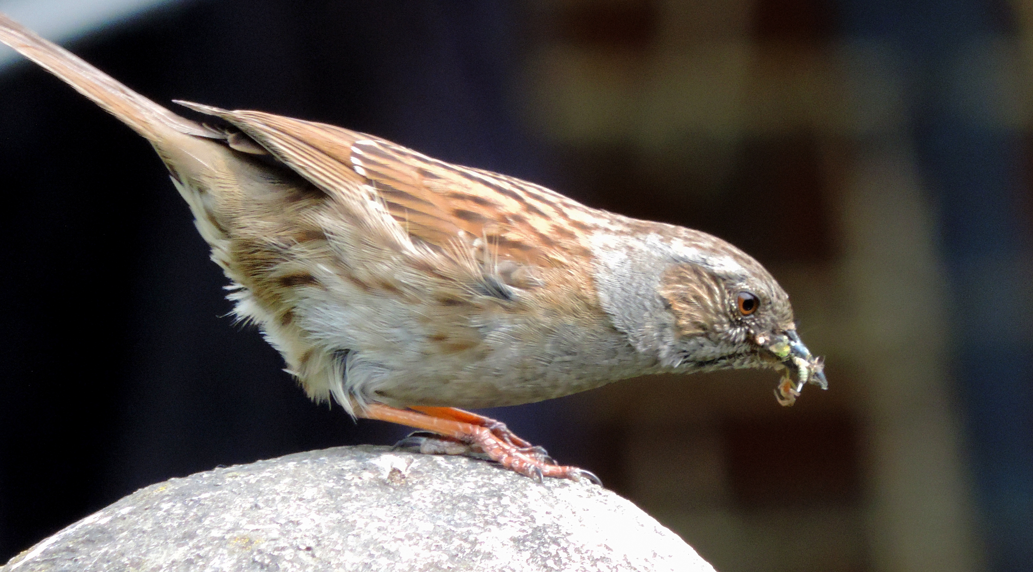 Het enige vogeltje waar ik in eigen tuin op kan oefenen is toch weer die heggenmus. Die vliegt af en aan met allerlei hapjes.