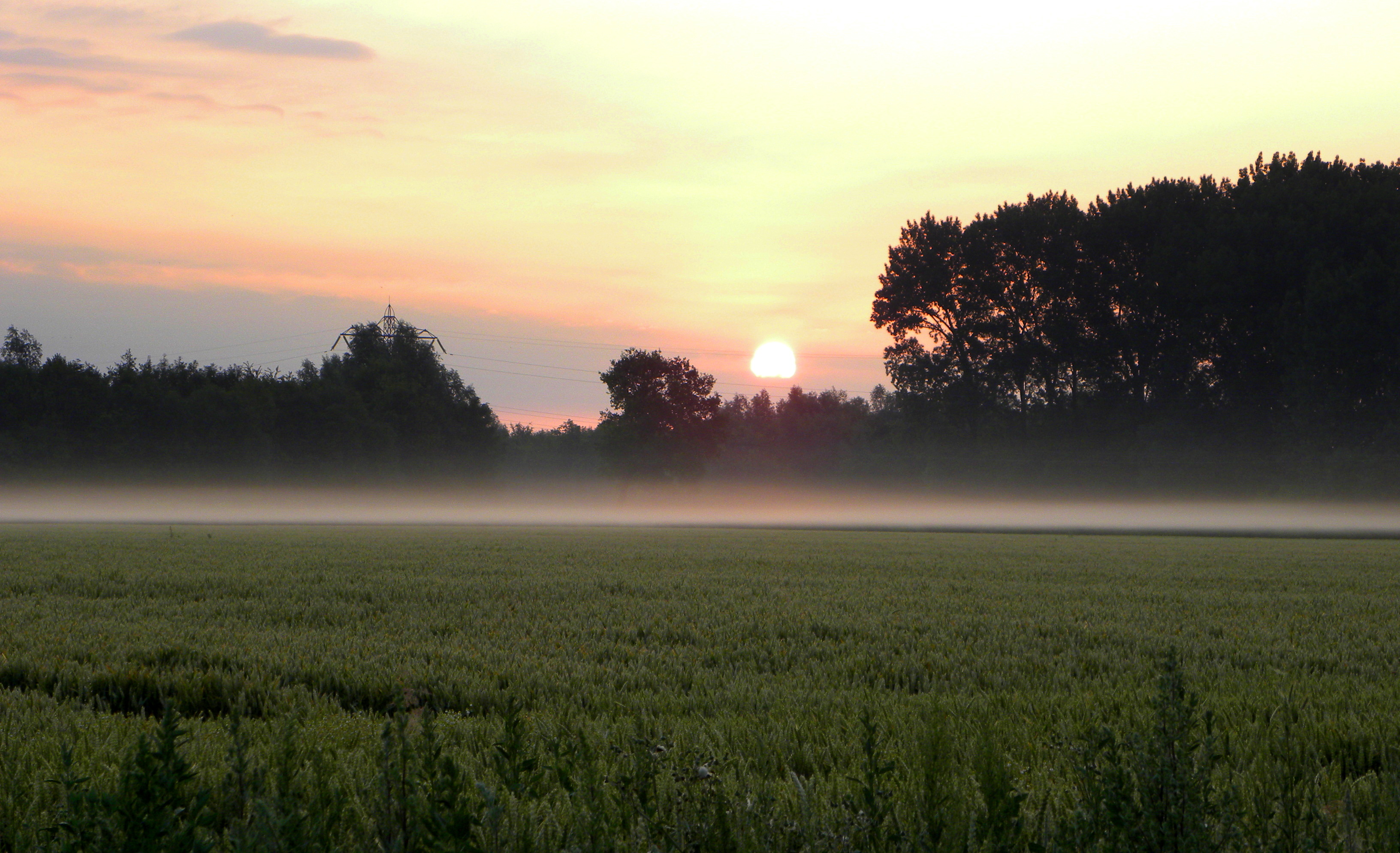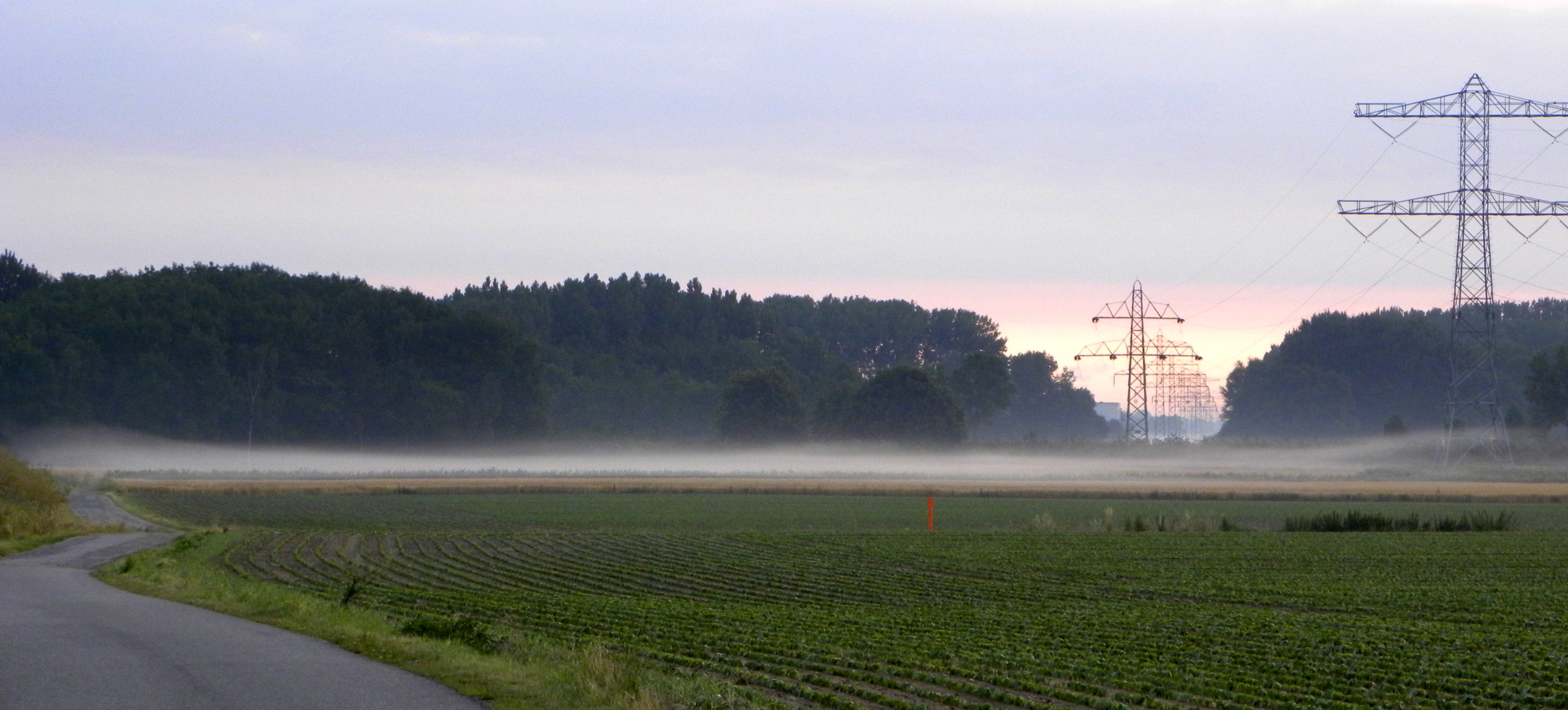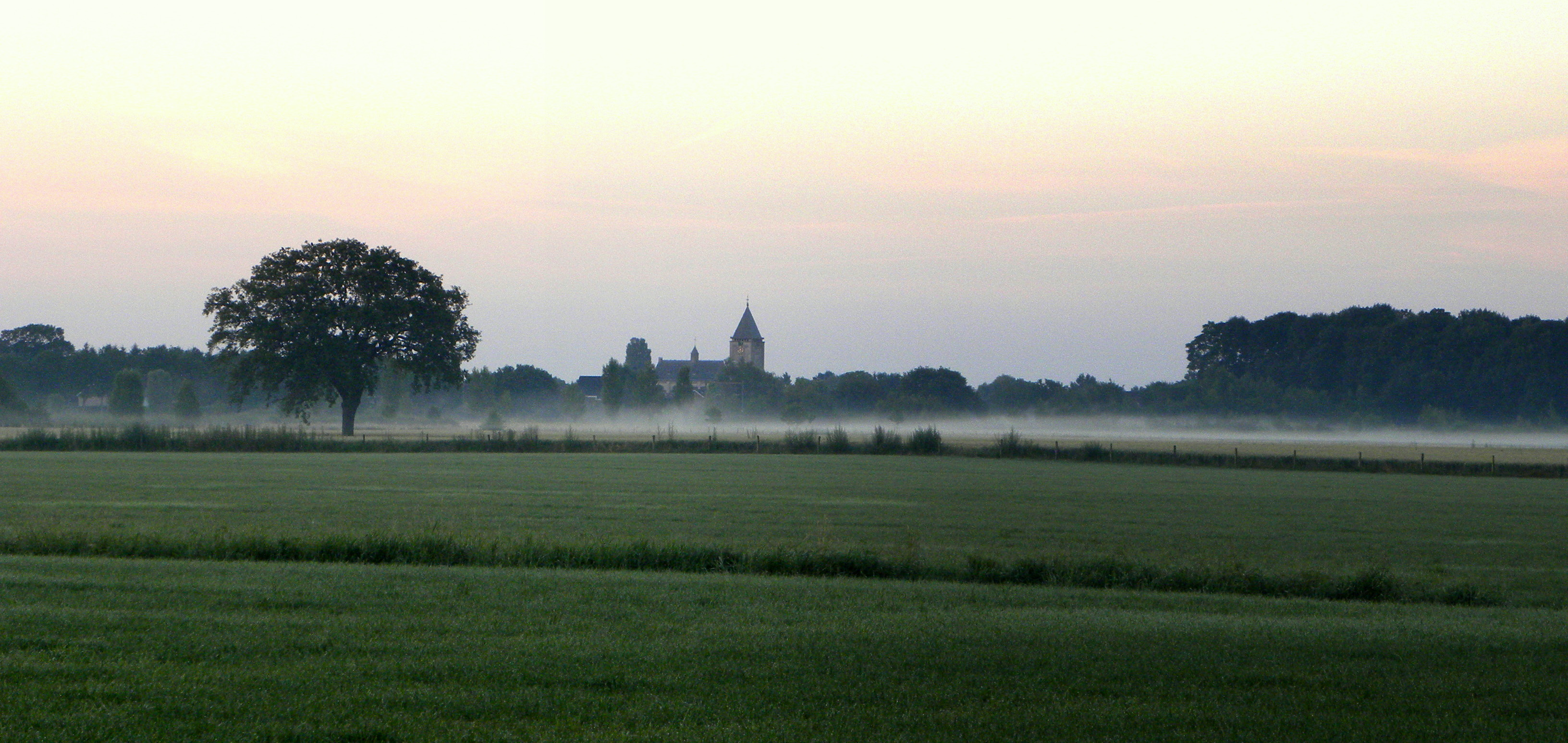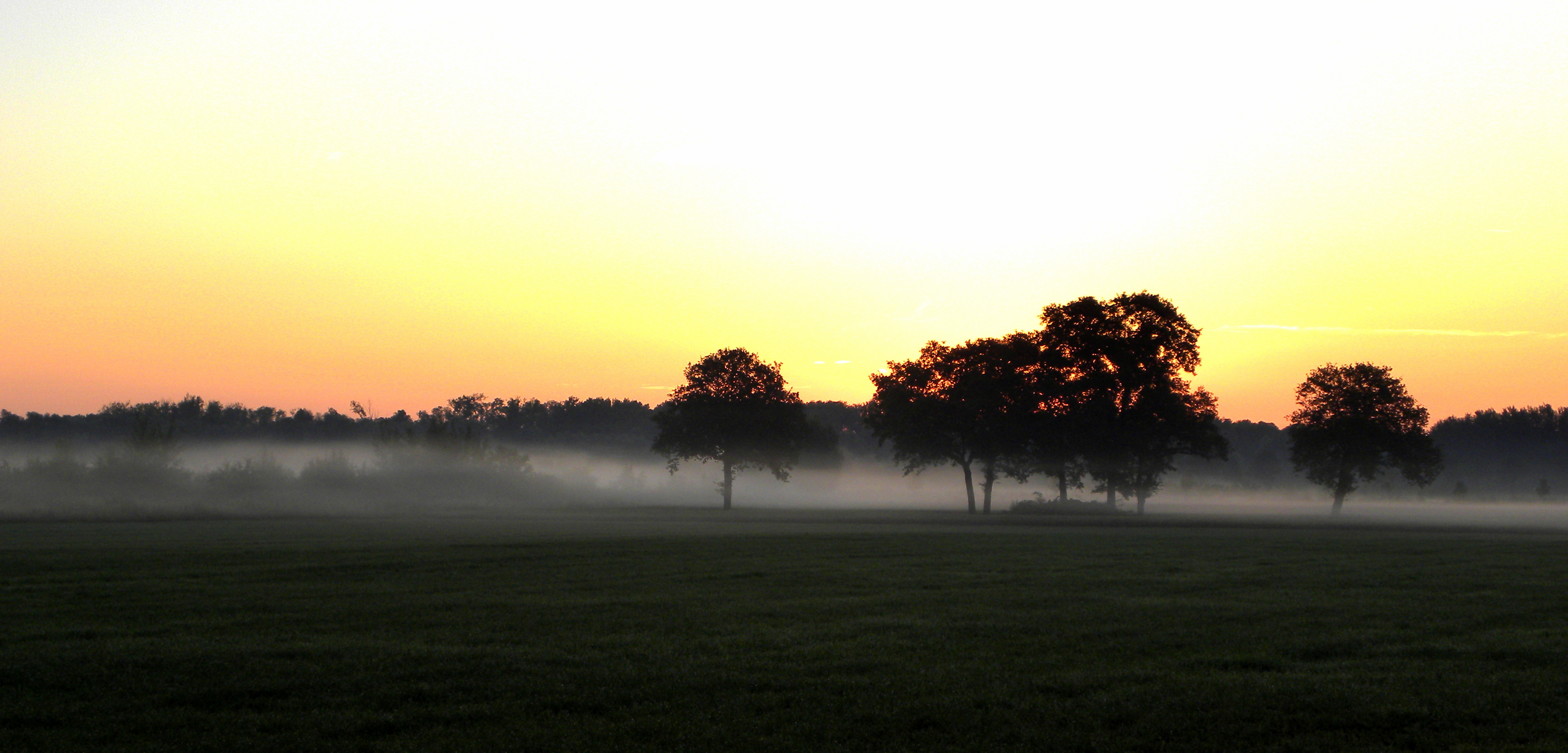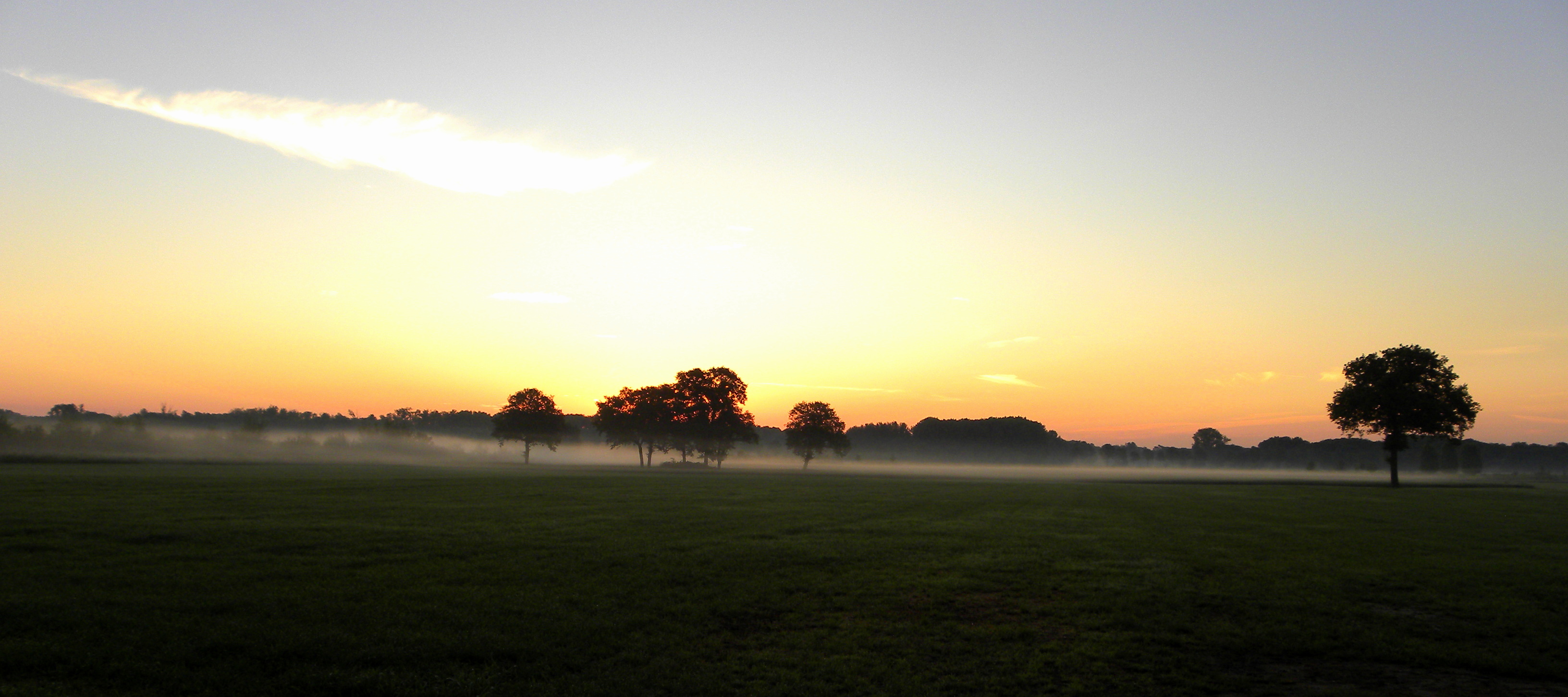 Al een paar ochtenden achter elkaar is het zo vroeg heel mooi met nevel over de weilanden.