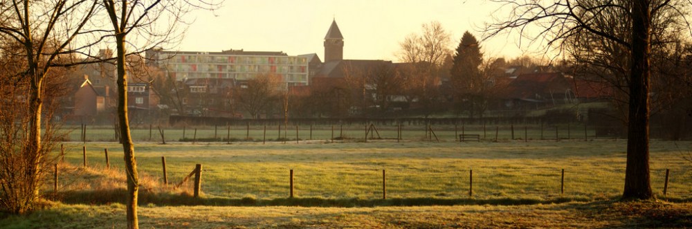 Die wandeling vorige week zo heel vroeg in de ochtend is me erg goed bevallen; dus voor herhaling vatbaar.  Dus; zaterdag rondje Geleenbeek 🙂 Half 7 als de zon net boven de huizen uitkomt sta ik bij het park van Sittard om van daaruit langs deze beek naar Munstergeleen te lopen. Het heeft nog lichtjes gevroren maar toch, de grondmist ontbreekt.