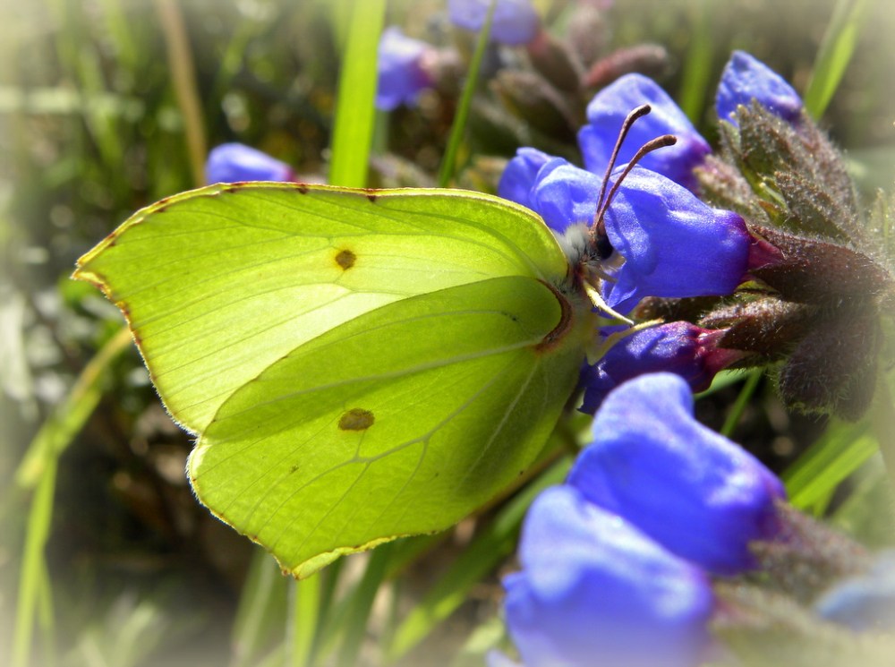 Mijn eerste vlinder dit jaar is een Citroenvlinder. Alhoewel niet de allereerste die ik gezien heb, dat was een Dagpauwoog, maar wel de eerste op de foto.