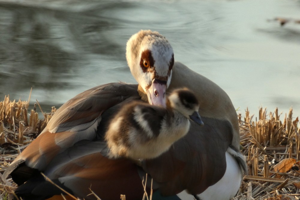 Ik had her en der al plaatjes van jongen Nijlganzen voorbij zien komen. Zijn zeker bang dat ze te laat komen 😉 Het zijn erg fotogenieke en snoezige pluizenbolletjes. Jammer dat het zulke onaardige beesten worden als ze groot zijn.