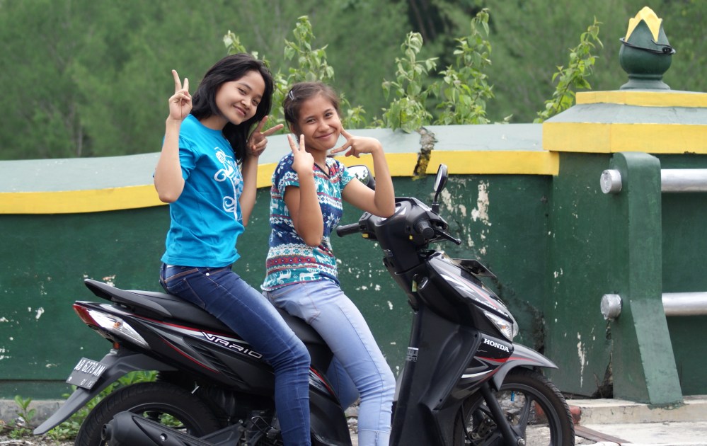Tijd voor de lunch … In een kampong vlakbij lopen we door een steegje met veel kinderen die allemaal “spontaan”? beginnen te zingen wanneer wij, toeristen voorbij komen. Mijn gevoel zei, geen foto’s maken … want je hebt niks bij je om die kinderen te geven. Wel een foto van 2 pubermeisjes die héél graag op de foto willen. Jammer genoeg heb ik hun email niet gevraagd.
