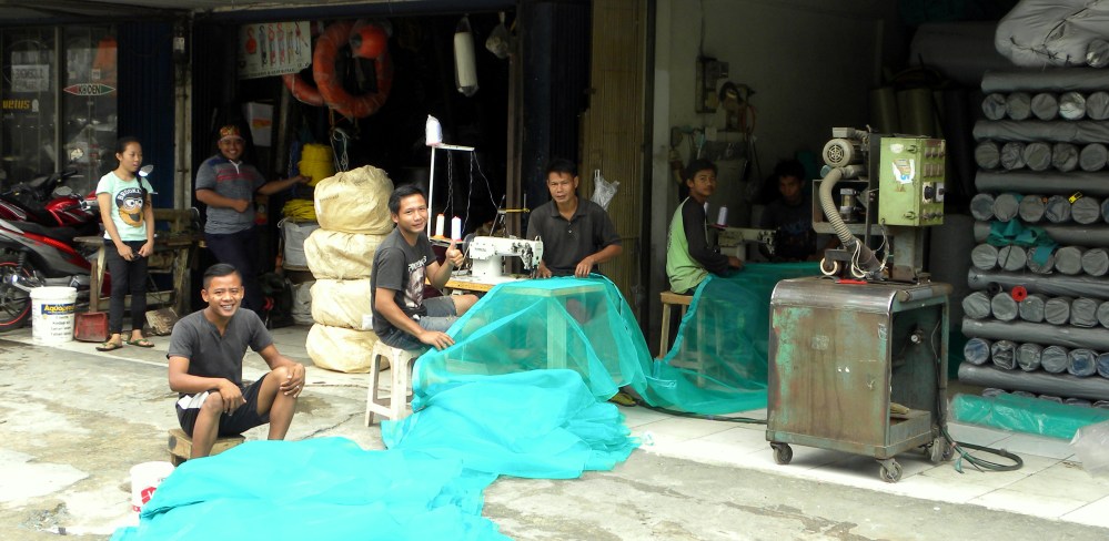 In een straatje vlakbij de haven zijn veel zeilmakerijen, een lucratieve business.