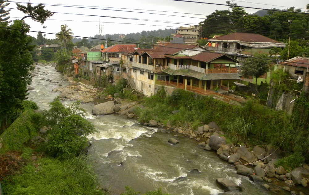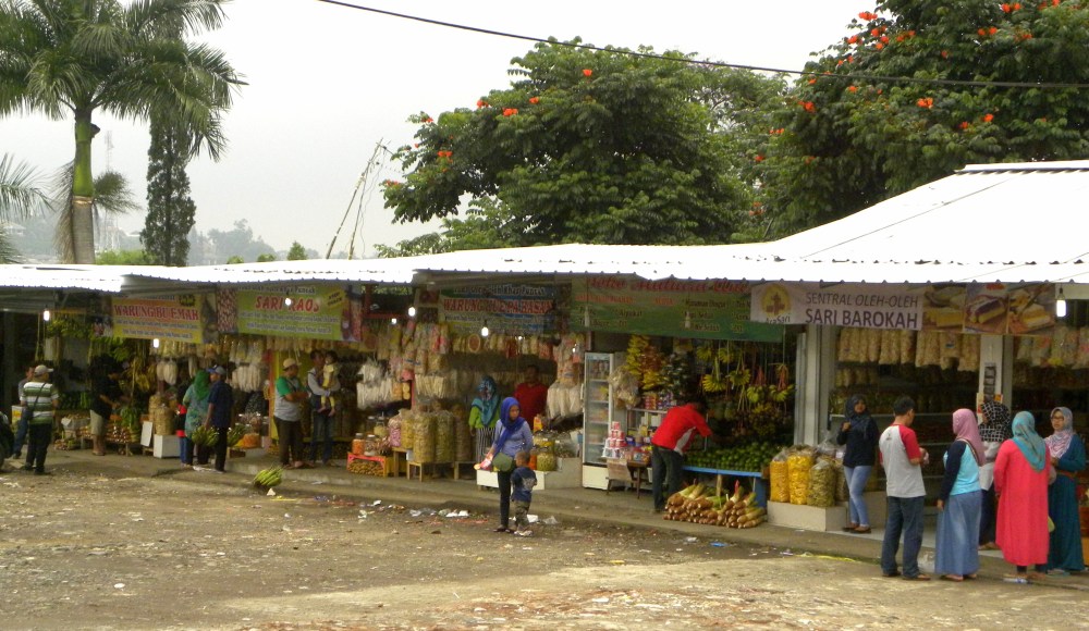 Onderweg naar Bandung zien we vanuit de bus toch dingen die je niet gewend bent. Een hotel in de steigers geheel gemaakt van bamboe stokken, winkels langs de hele route, uitlaatgassen happende motorrijders, zilveren jongetjes 😉 en een wirwar aan huisjes tussen de hoogbouw.