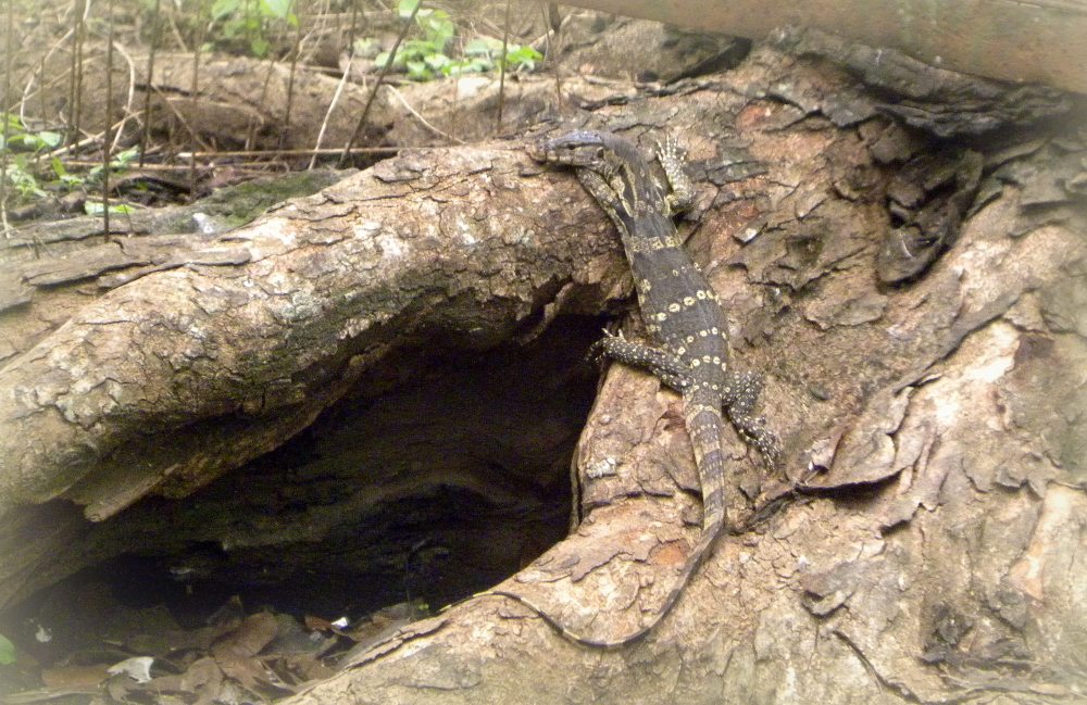 Nu ik even wat tijd voor mezelf heb kan ik ook rustig afwachten tot de net weg geglipte Skink (East Indian Brown Mabuya) weer te voorschijn komt uit de holle boomstronk, wat mij betreft levert dit een paar mooie plaatjes op.