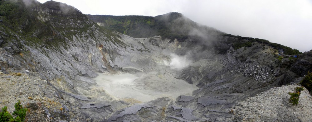 In Bandung is het al net zo druk blijkt de volgende dag, als we naar de krater van de vulkaan Tangkuban Perahu reizen. Het is ongeveer 25 kilometer maar toch een paar uur rijden. Als we eenmaal buiten de stad zijn is het wel een mooie rit langs vele dorpjes en theeplantages.