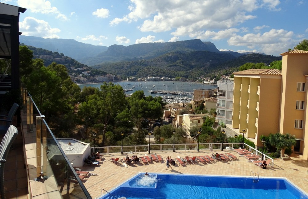 In Puerto de Sollér met zijn werkelijk schitterende baai en haventje gelegen aan zee tussen de hoge bergen waan je je in eerste instantie eerder in Oostenrijk of Zwitserland dan op Mallorca…Overigens is deze foto genomen vanaf het terras van hotel Sentido Porto Soller, ook een fantastisch 4-sterren hotel met panoramarestaurant-uitzicht over deze baai. Lang geleden ook eens gelogeerd, altijd een geweldig uitzicht, heeft de beste keuken hier !