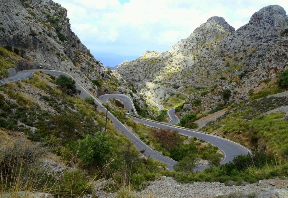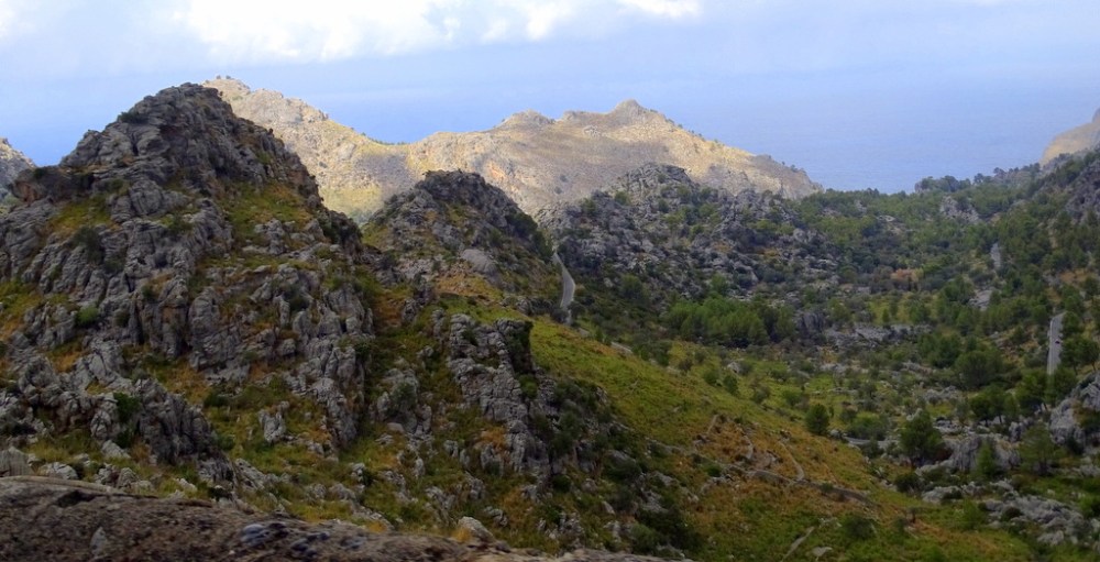 En dan, verder noordwaarts…. Halfweg het eiland slaat er een weg af naar zee richting Sa Calobra.. Een prachtig panorama ontvouwt zich. Vele haardspeldbochten brengen je op een 16 km lange weg van 1600 meter hoogte naar zeeniveau. Wat weinigen weten is dat hierdoor deze pas de grootste van Europa is, nergens wordt er zo een groot hoogteverschil overbrugd. Niet doen tussen 11.00 en 15.00 uur, het is een smalle weg met veel toeristen (vaak in bussen) wat veel oponthoud veroorzaakt. Beneden aan zee kun je in een mooie kloof wandelen. We zijn niet helemaal afgedaald daar we hier reeds diverse malen zijn geweest.