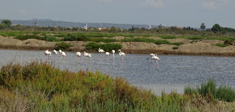 Maar goed, we komen voor de vele vogelgebieden die er te vinden zijn. Dus rijden we door naar een klein merengebied, Salinas de Levante, gelegen tussen Ses Salines en Colonia Sant Jordi. We zijn verbaasd dat we hier flamingo’s aantreffen, niet gedacht. Daar moet ik dadelijk eens wat dichterbij zien te komen…