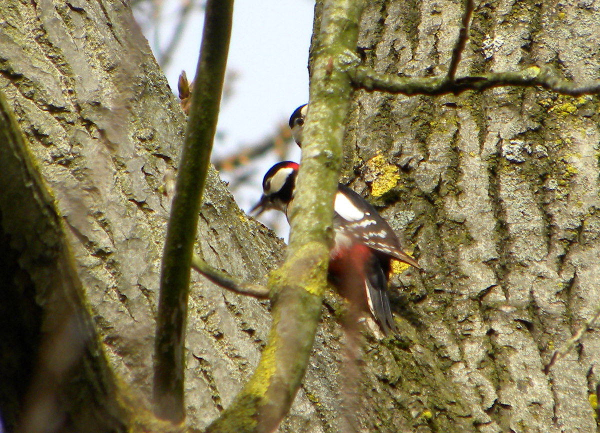De boomklever was niet gediend van deze vriend en vertrok … jammer want een paar seconden later landde er nog een bonte specht in deze blijkbaar aantrekkelijke boom.