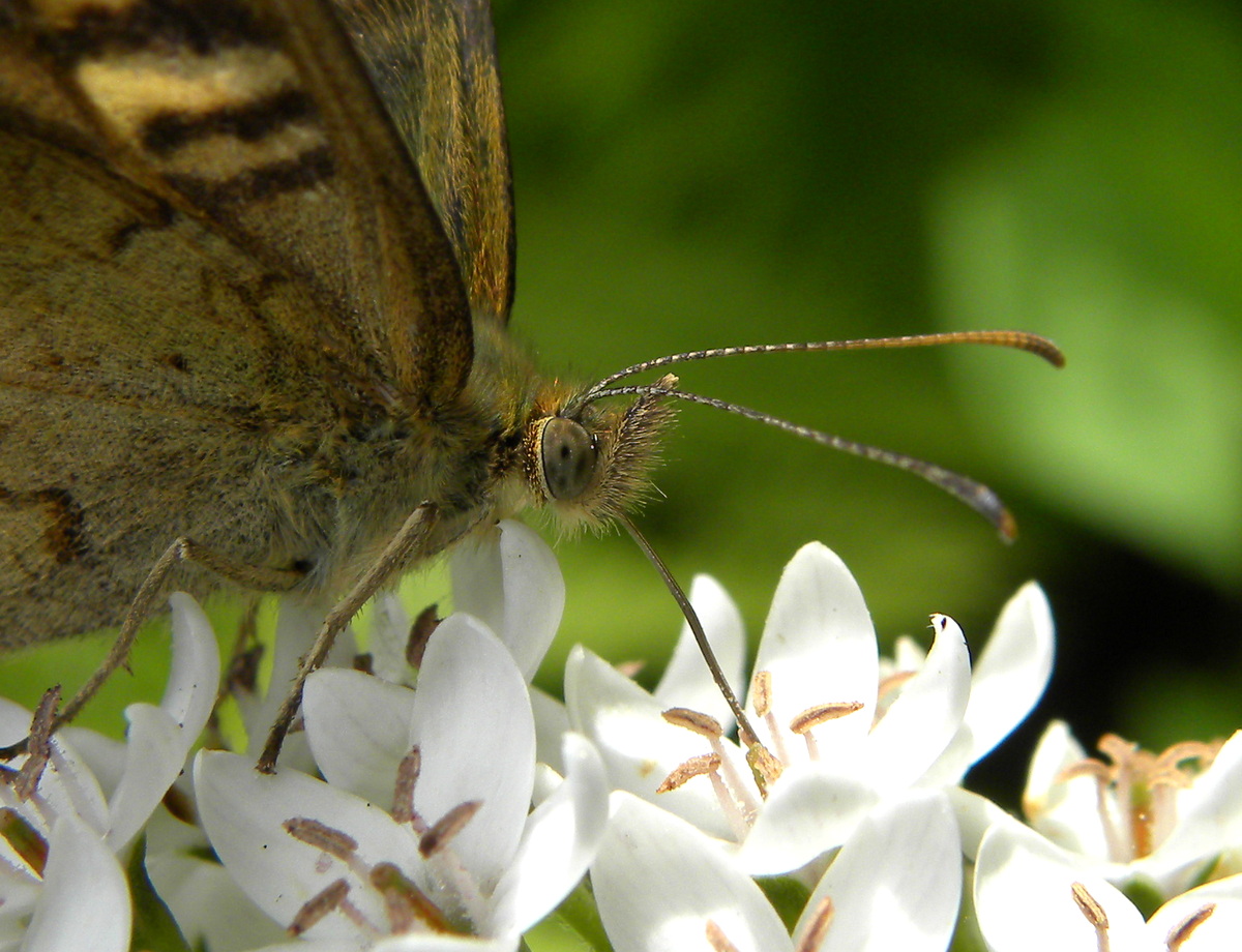 De linker is een nachtvlinder genaamd een Koperuil, een “baardig” gevalletje. Voor het eerst gezien in de tuin. De rechter is een Bruin Zandoogje, welbekend neem ik aan. Hieronder zijn ze in hun geheel te zien.