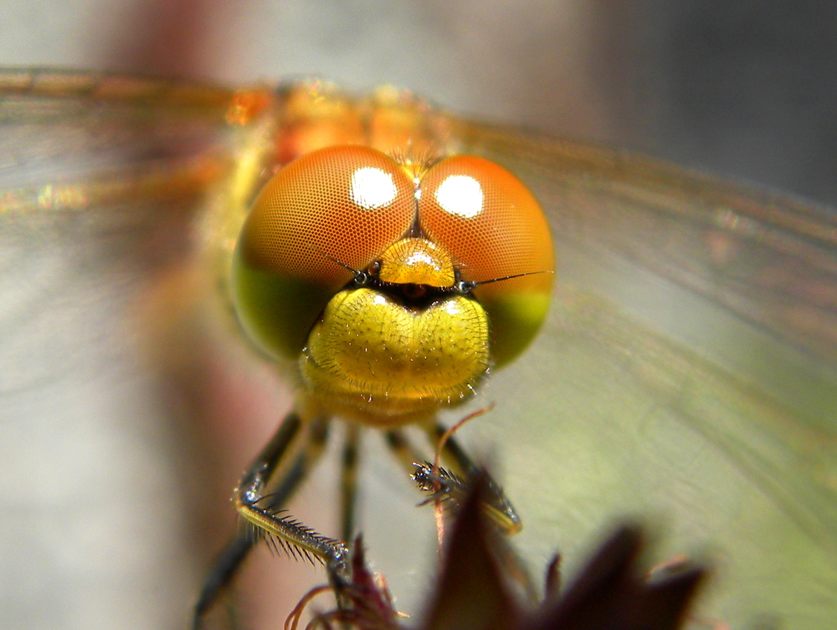 Het zwarte streepje onder zijn neus is recht en loopt aan de zijkant NIET door naar beneden. Dat maakt deze libel dus tot een Bruinrode Heidelibel…