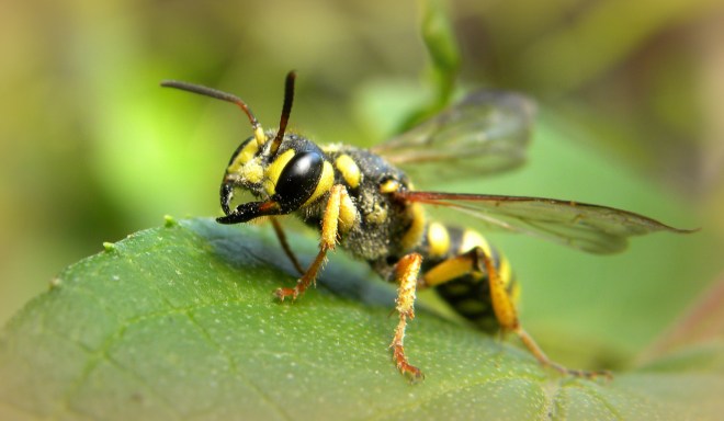Het is een wesp uit de familie Knoopwespen , ook Graafwespen genoemd, en dit is meteen de grootste die we in Nederland kennen. Voor mij is het de eerste keer dat ik er eentje gezien heb.
