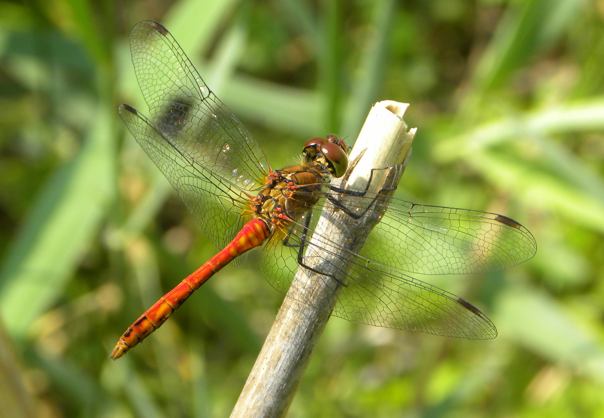 Hier waren weer heel andere libellen van de partij. Een aantal bloedrode heidelibellen, zowel mannetjes als vrouwtjes.