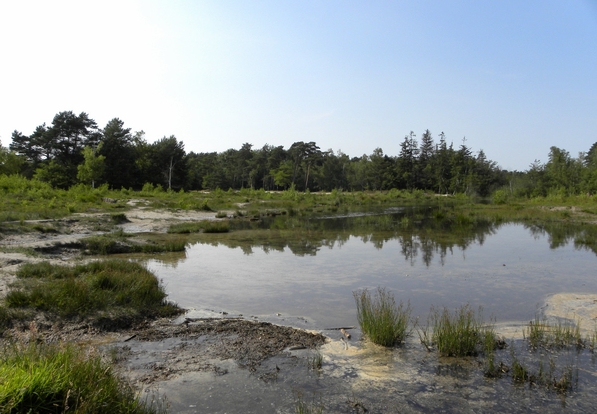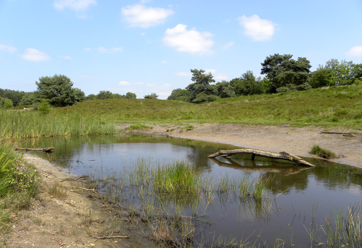 Na een stukje gelopen te hebben kwam ik bij een kleine poel … Normaal veel groter, maar de droogte heeft hier al zijn werk gedaan. Sjonge wat is het heet. Ik was toch niet de enige wandelaar …