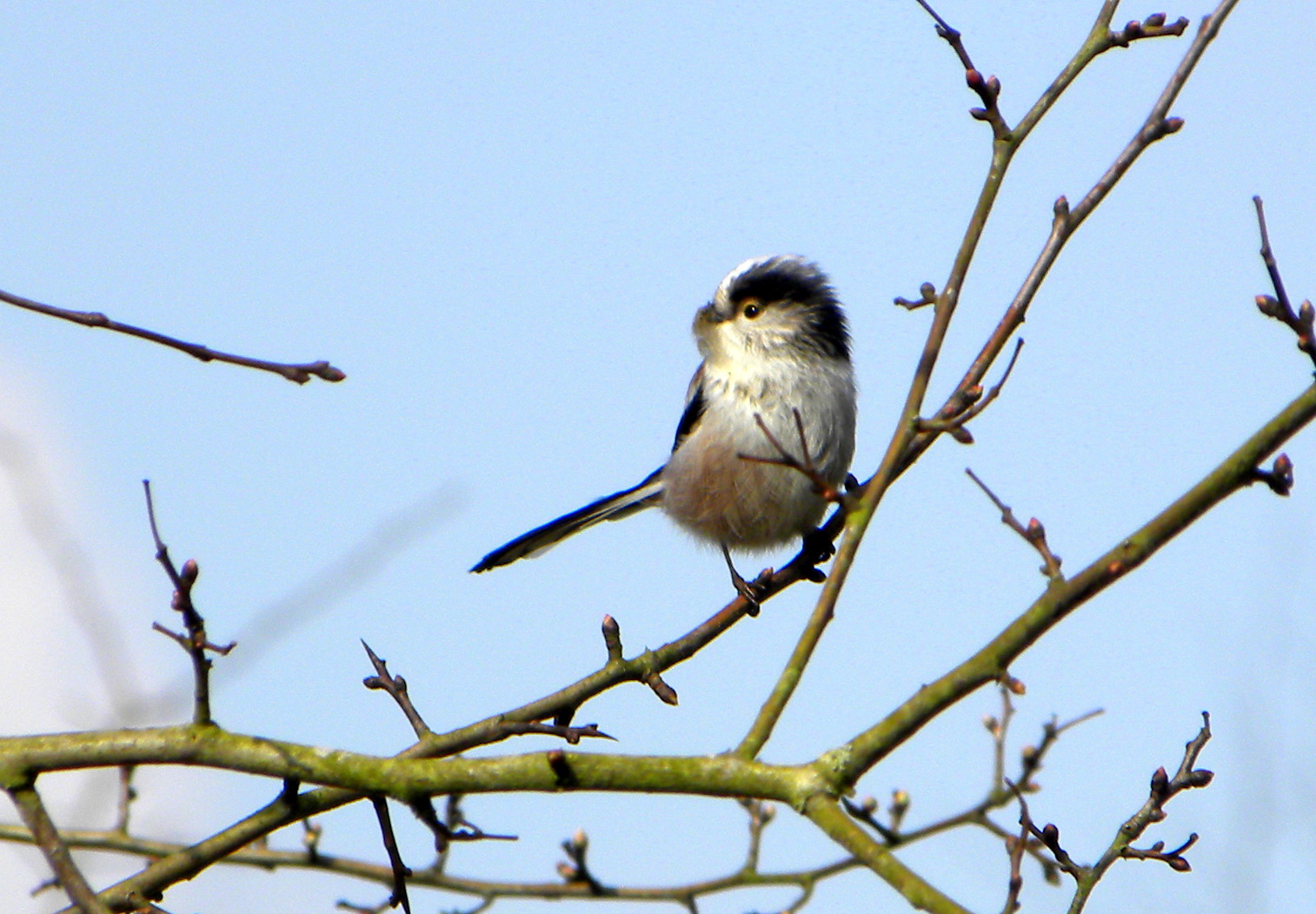 Lekker rustig is het hier … Een Meerkoet is bezig een nest te bouwen en twee Grauwe ganzen vinden het té rustig want die toeteren er af en toe lustig op los. Een stel Wilde eenden maken het leven van een vrouwtje lastig en een stuk of vijf Staartmeesjes zoeken eten in het riet. Ze zijn lastig te fotograferen maar eentje laat één keertje mooi zijn staartje zien.