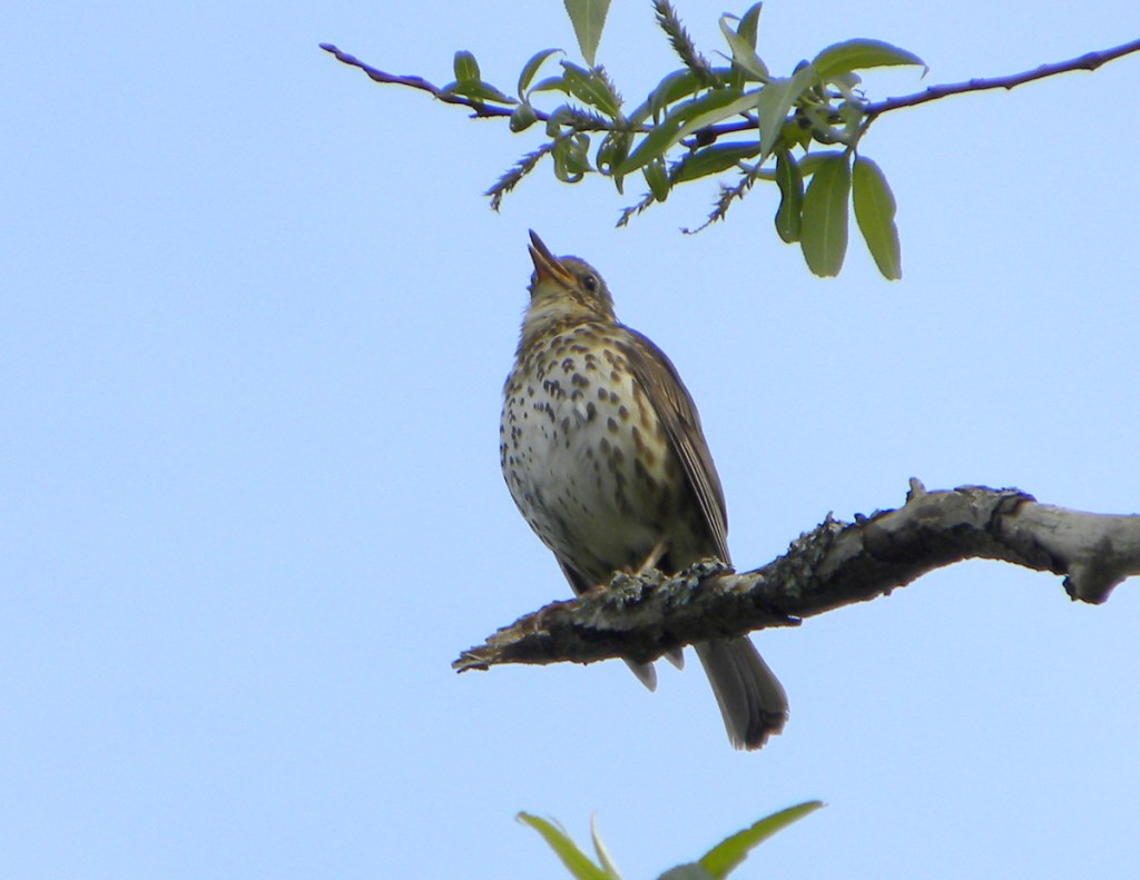 Een daarvan heb ik op de foto … een zanglijster die erg zijn best doet met zijn liedjes.