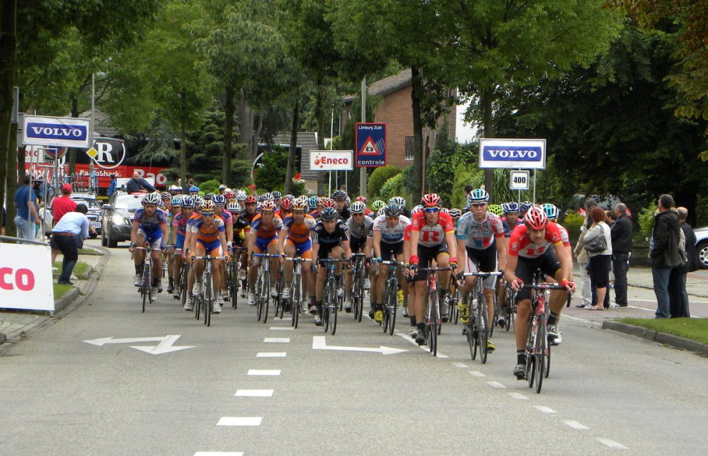De renners maakten eerst nog een rondje door Sittard voor ze hier nog een tweede keer voorbij komen om te finishen.