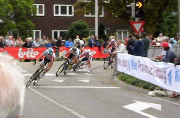 Het gaat zooo snel dat je helemaal niet weet wie je op de foto hebt, later bleek dat ik bij toeval Phillippe Gilbert mooi scherp in beeld heb met Karsten Kroon die over zijn schouder loert.